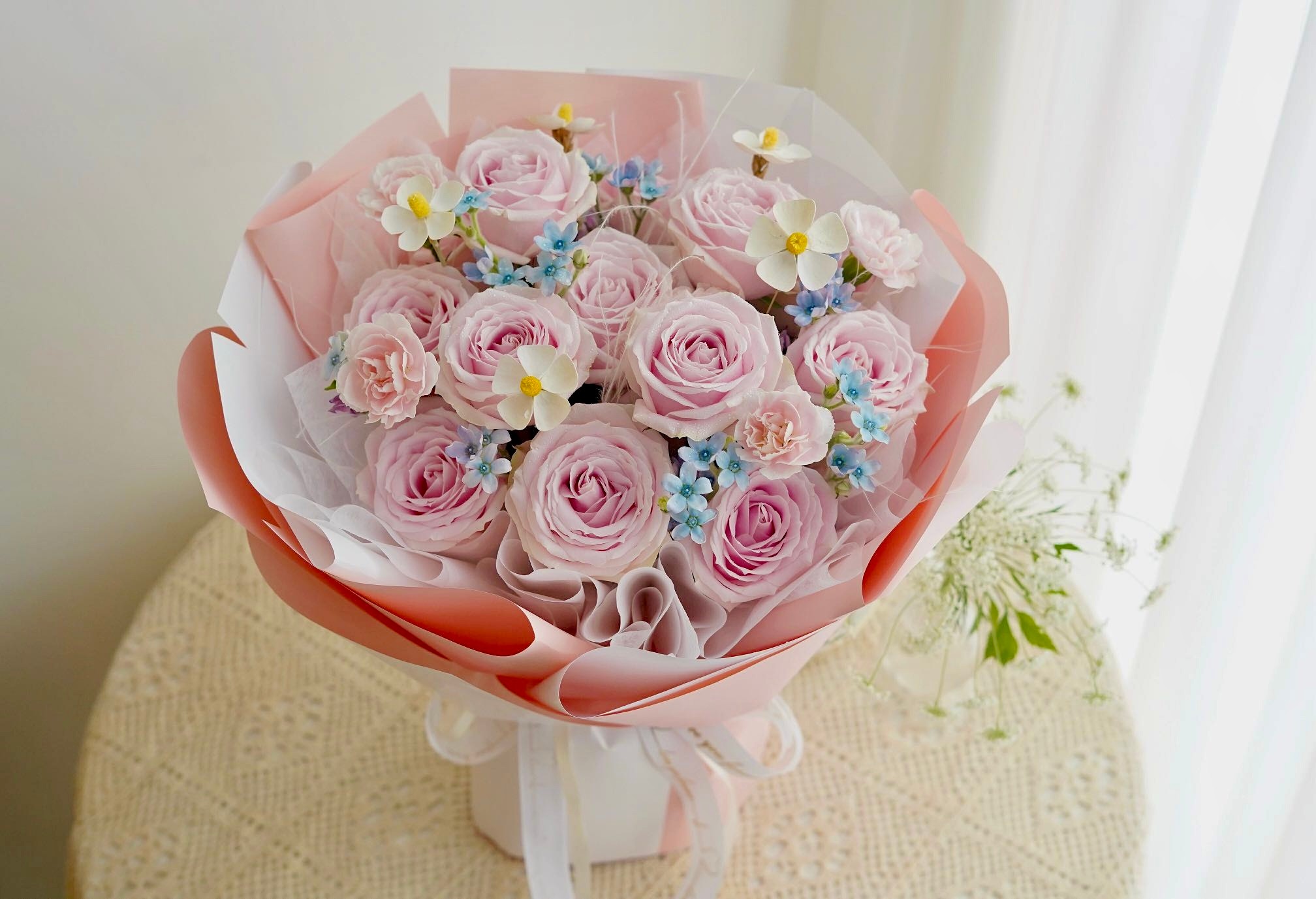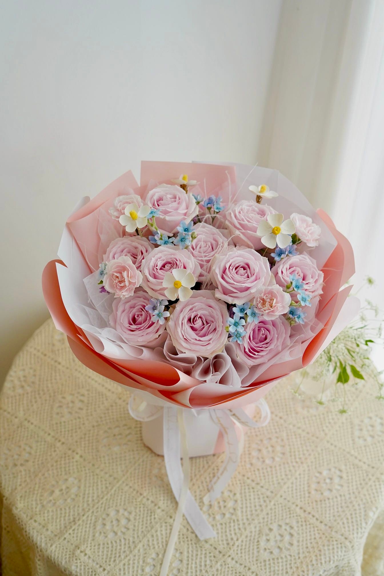 花材季节性强,如遇个别品种缺货,在保持整体色系风格不变的情况下,花艺师会用相似品种做替代,特此说明。