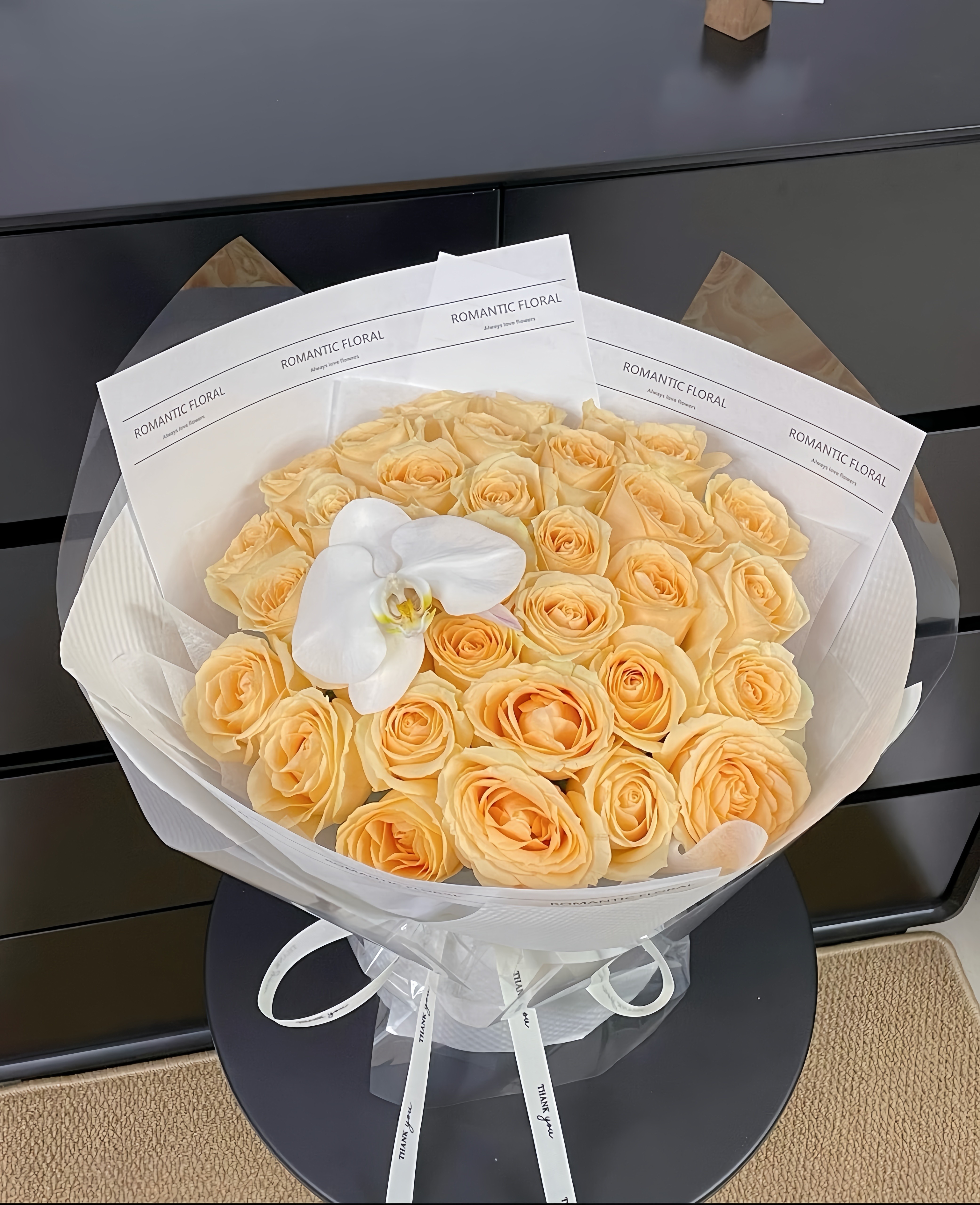 花材:玫瑰、蝴蝶兰(不含花瓶)