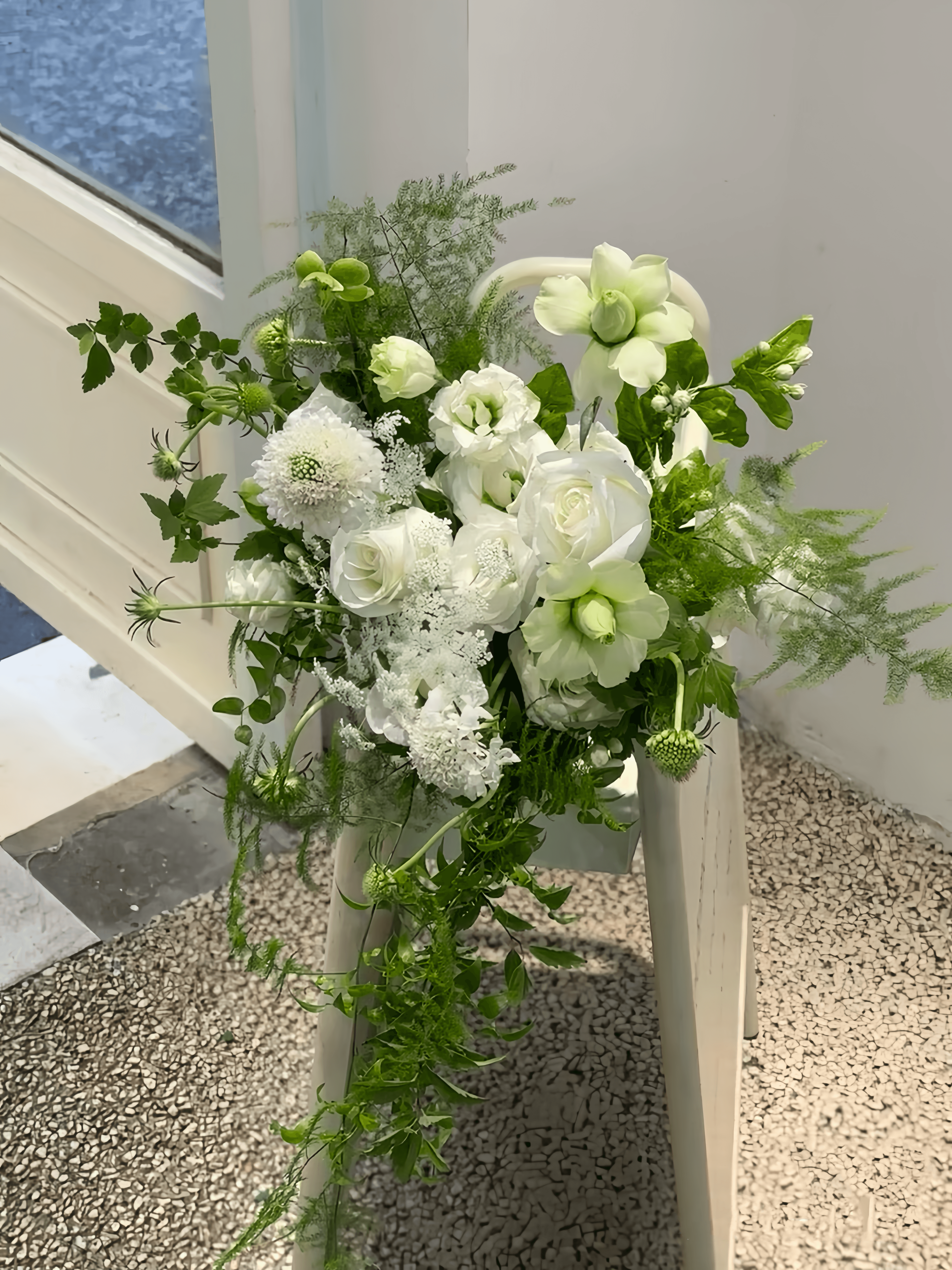 花材:桔梗、玫瑰、松虫草、茉莉、菟葵、文竹