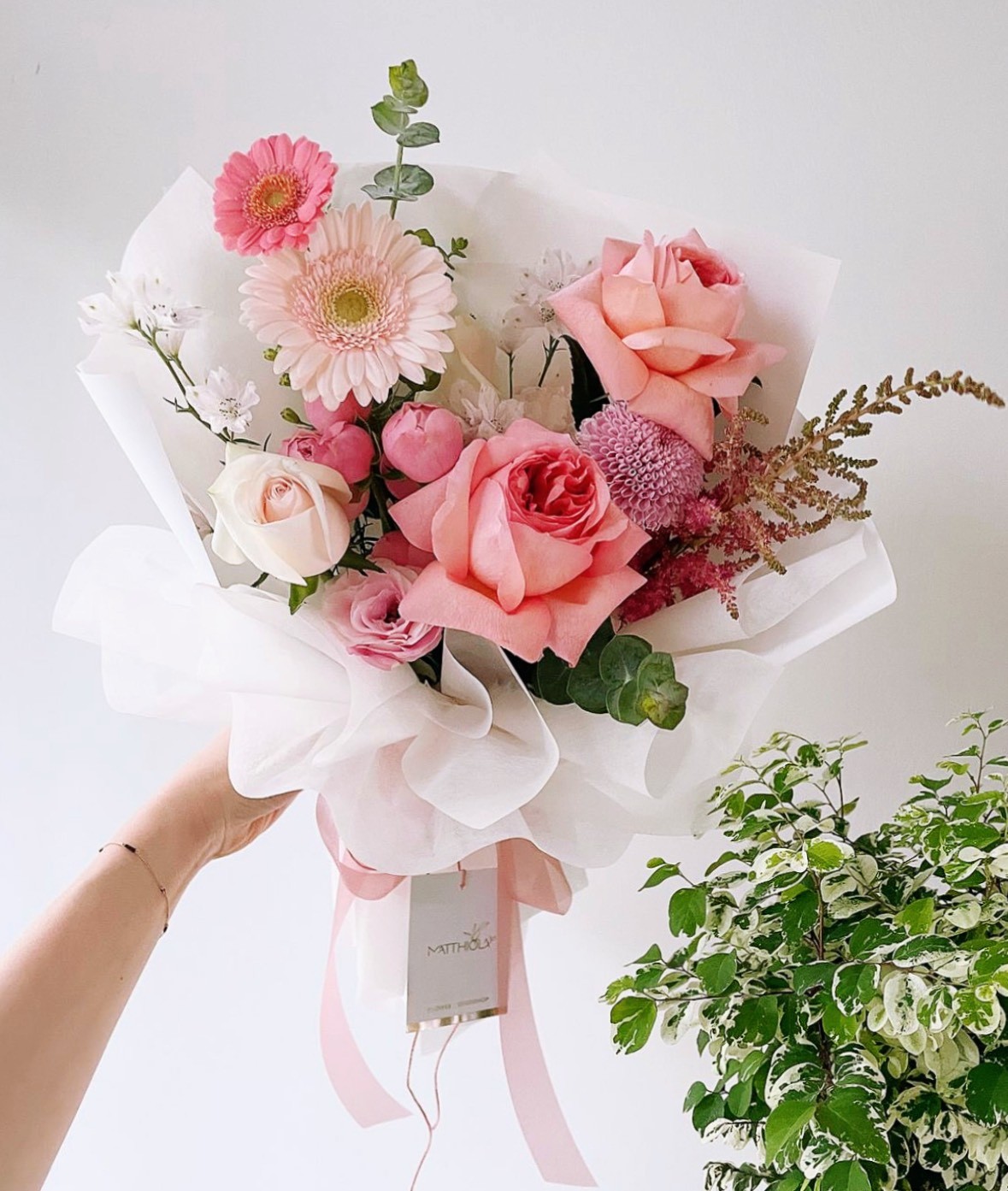 清新白粉混搭花束