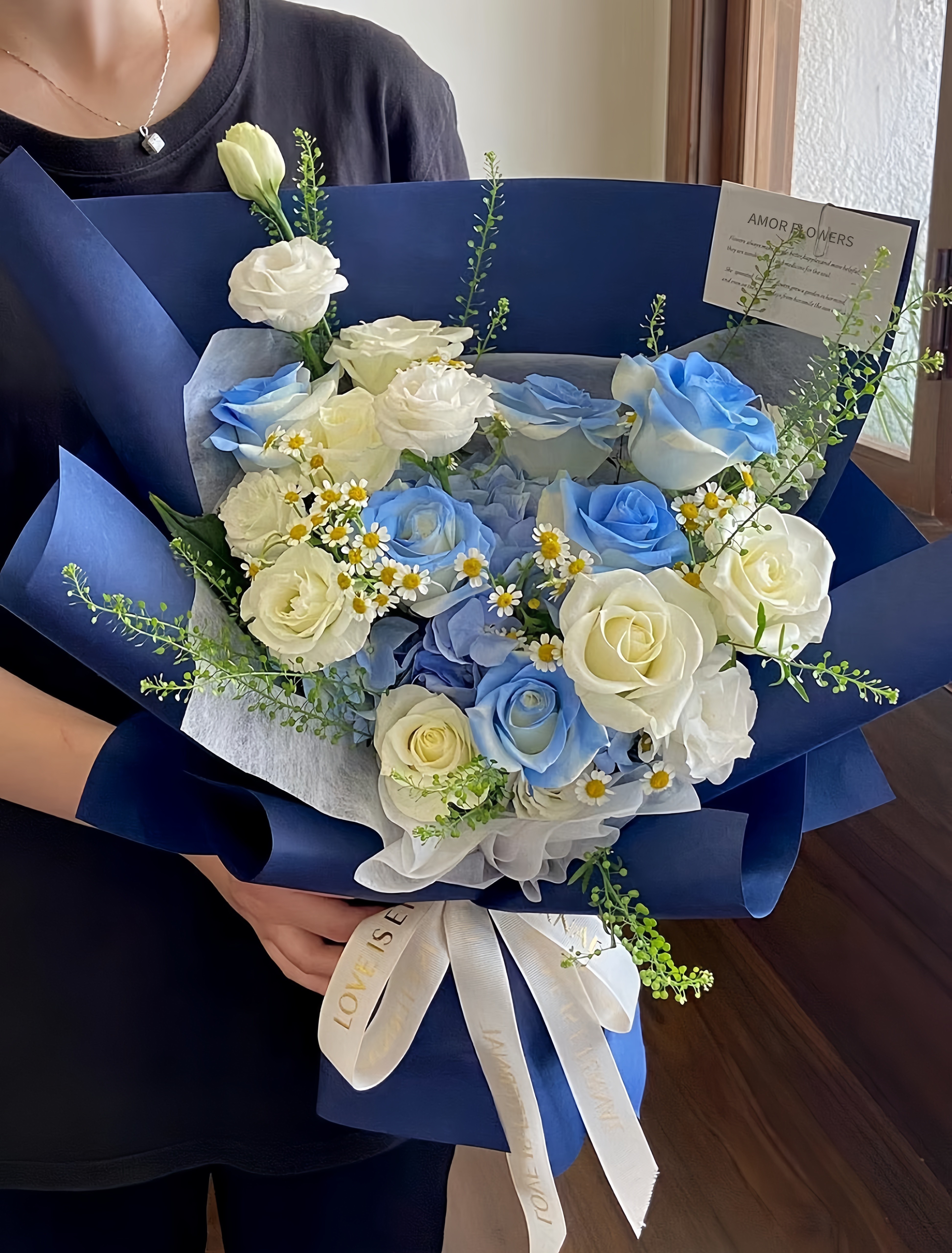 碎冰蓝的狂欢 | 玫瑰绣球混搭毕业花束